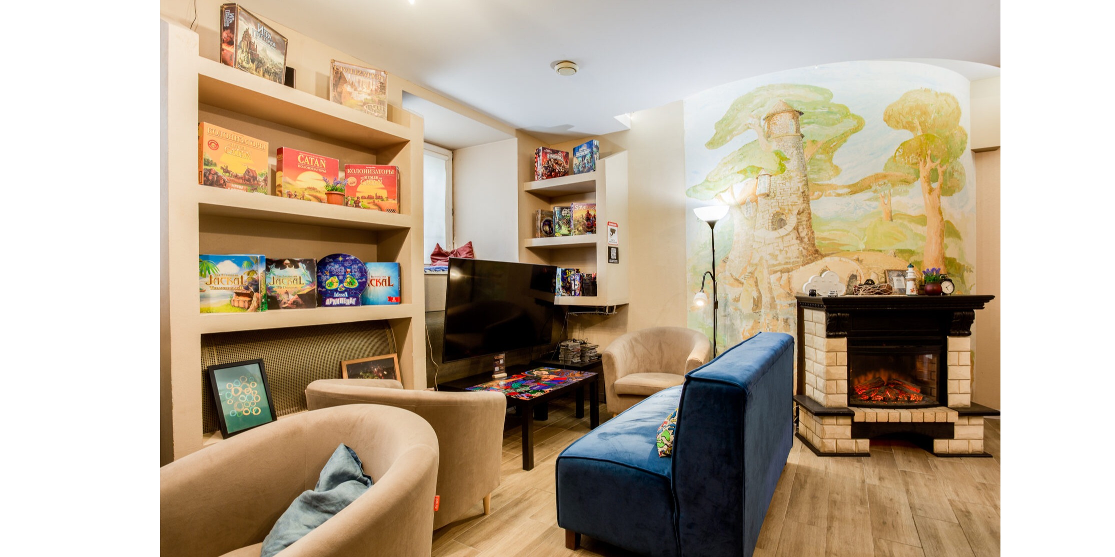 Плюсы: круглосуточное антикафе, большой выбор развлечений: смотреть ТВ на большом экране, устроить караоке, играть в настольные игры. Удобные диванчики и возможность разместиться в уютной гостиной. Отличное место, чтобы отдохнуть и переключиться. Находится в центре рядом с метро Белорусская".